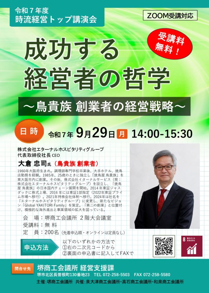 【終了】【当所共催】時流経営トップ講演会(9/29)