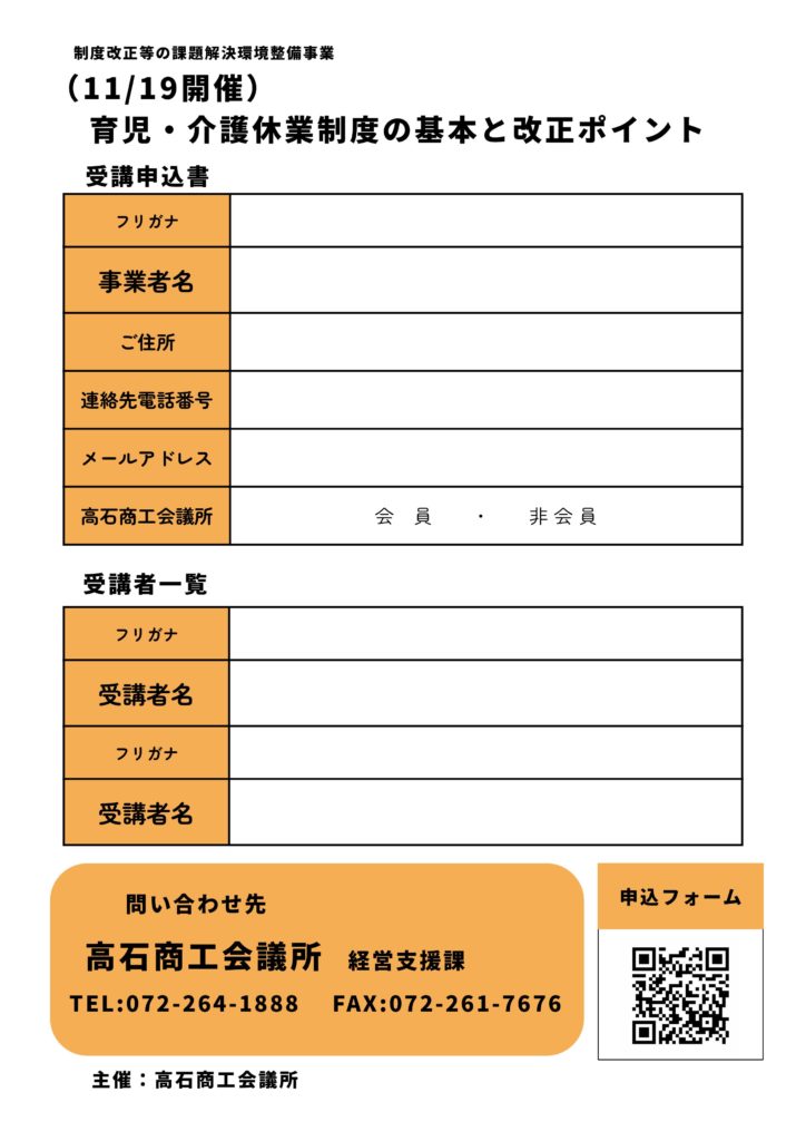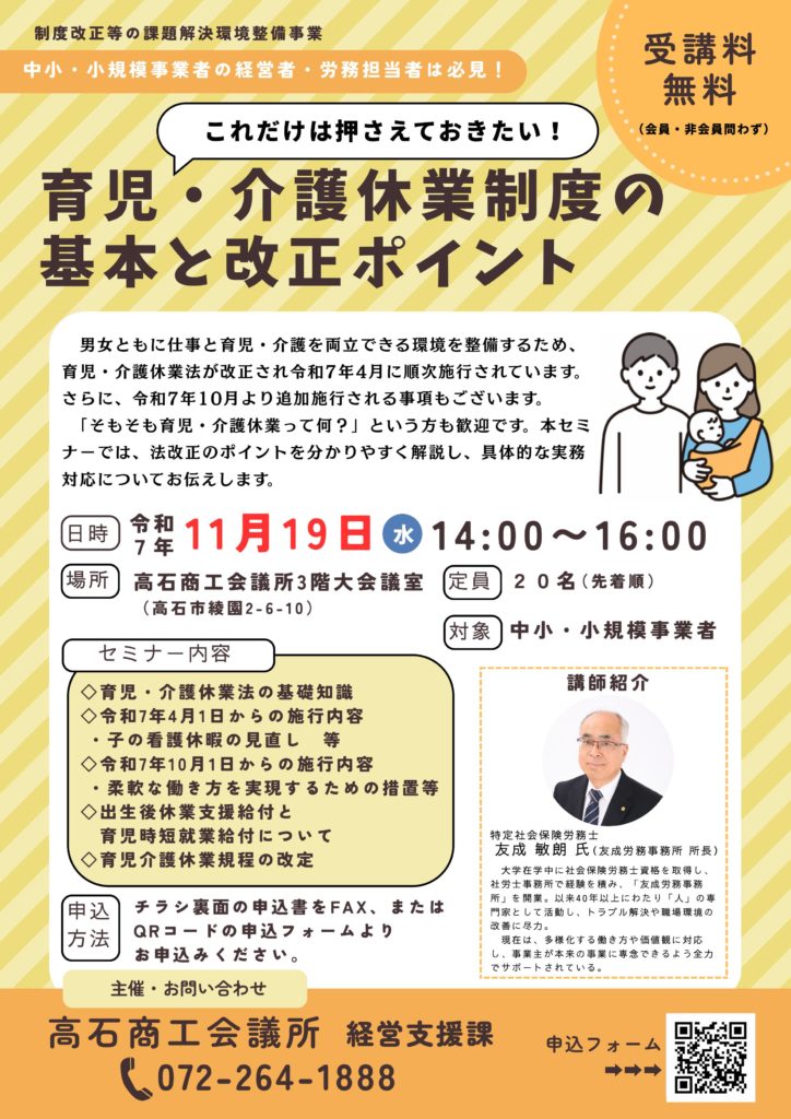 【終了】【当所主催】育児・介護休業制度の基本とポイント(11/19)