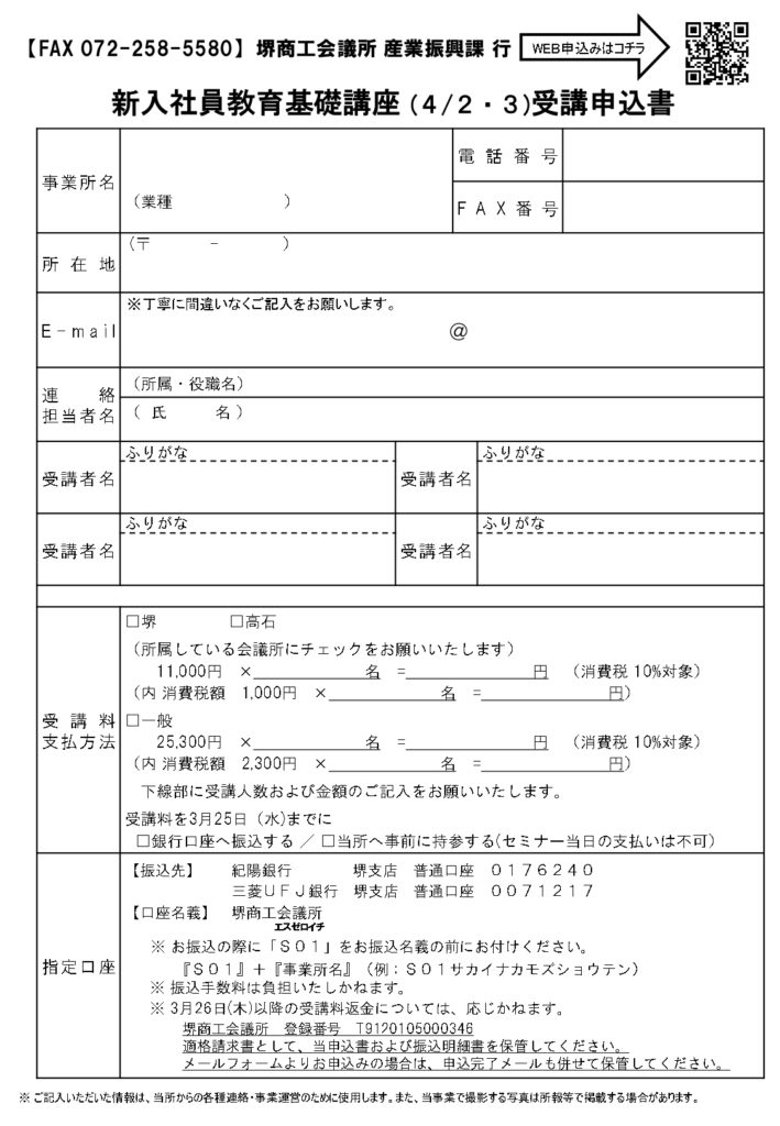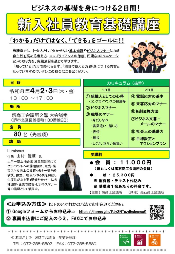 【当所共催】新入社員教育基礎講座(4/2,3)
