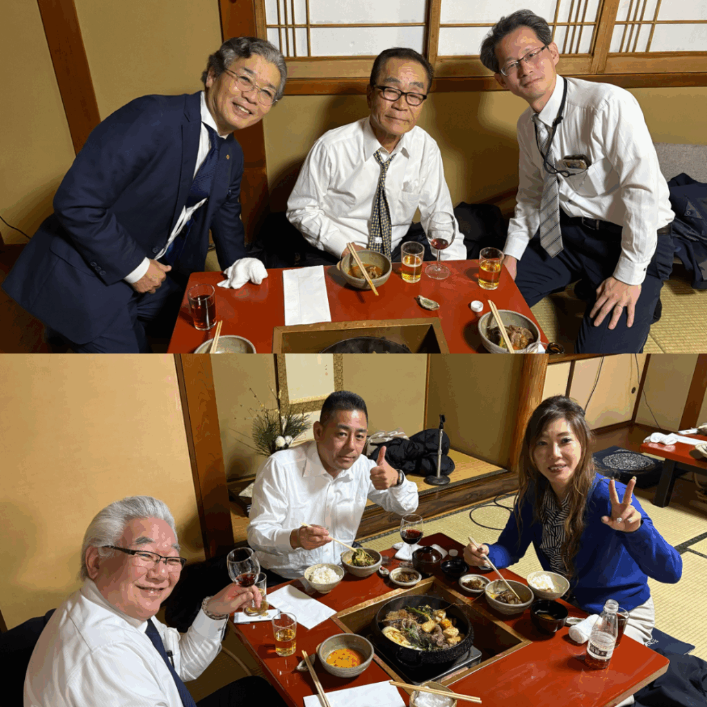 参拝後は、伊賀上野「金谷」にてすき焼きの夕食を囲み、当日の参拝を振り返りながら和やかな雰囲気の中で意見交換が行われました。