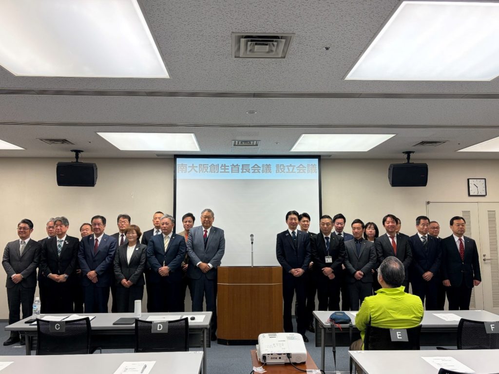 1月24日、泉州地域及び南河内地域の22市町村が連携して、地域課題の解決等に取り組む「南大阪創生首長会議」の設立会議が開催され、当所の谷本会頭が出席しました。