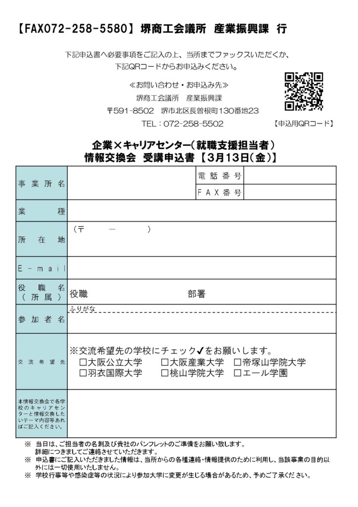 【当所共催】企業×キャリアセンター情報交換会(3/13)
