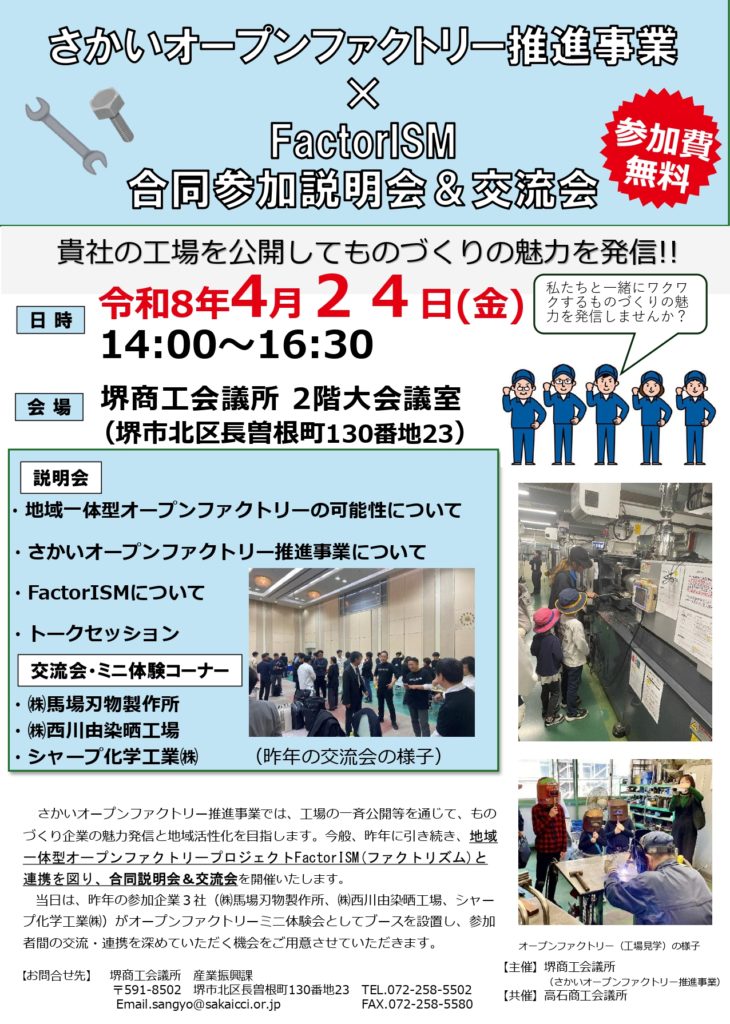 【当所共催】オープンファクトリー(4/24)