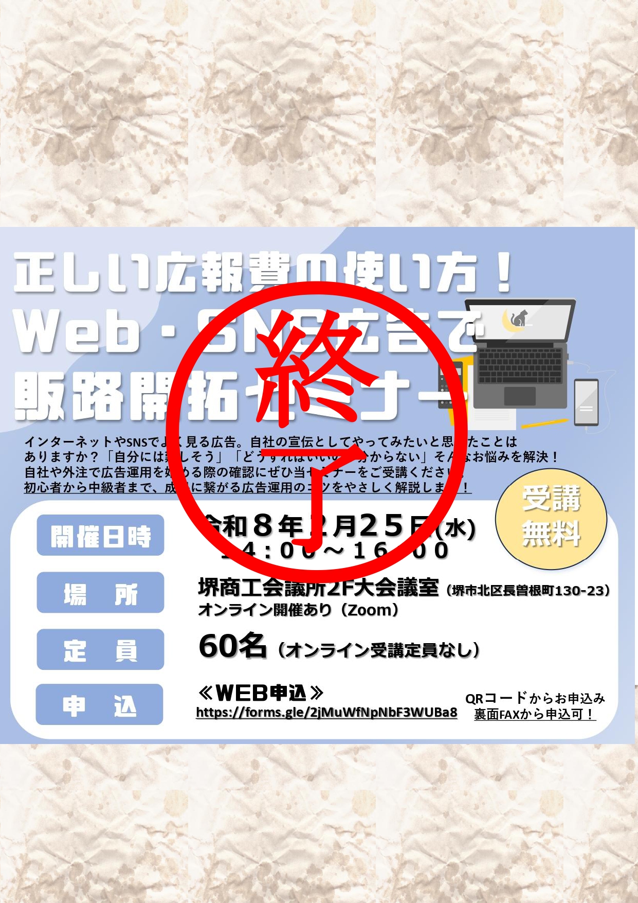 【終了】【当所共催】正しい広告費の使い方!Web・SNS広告で販路開拓セミナー(2/25)