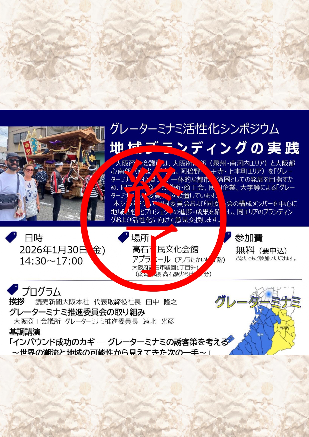 【終了】グレーターミナミ活性化シンポジウム 地域ブランディングの実践(1/30)