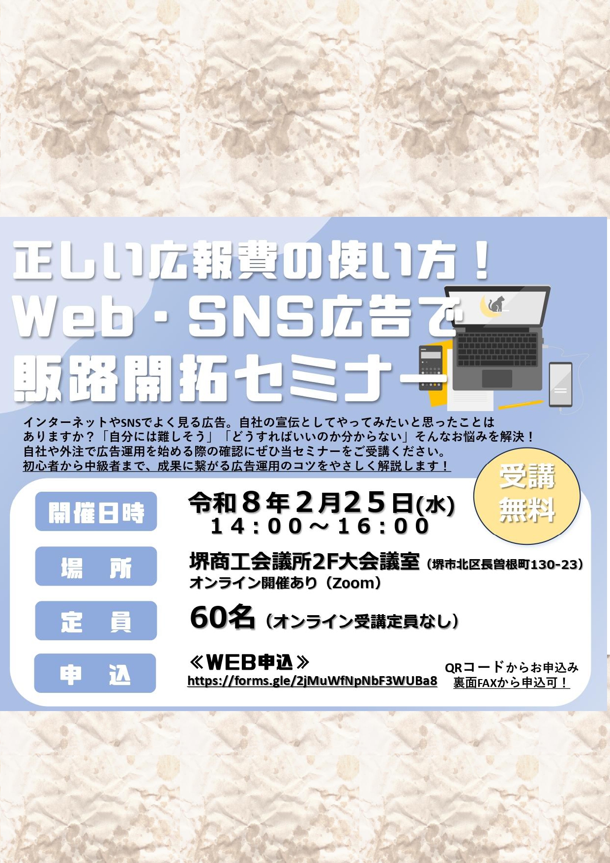 【当所共催】正しい広告費の使い方!Web・SNS広告で販路開拓セミナー(2/25)