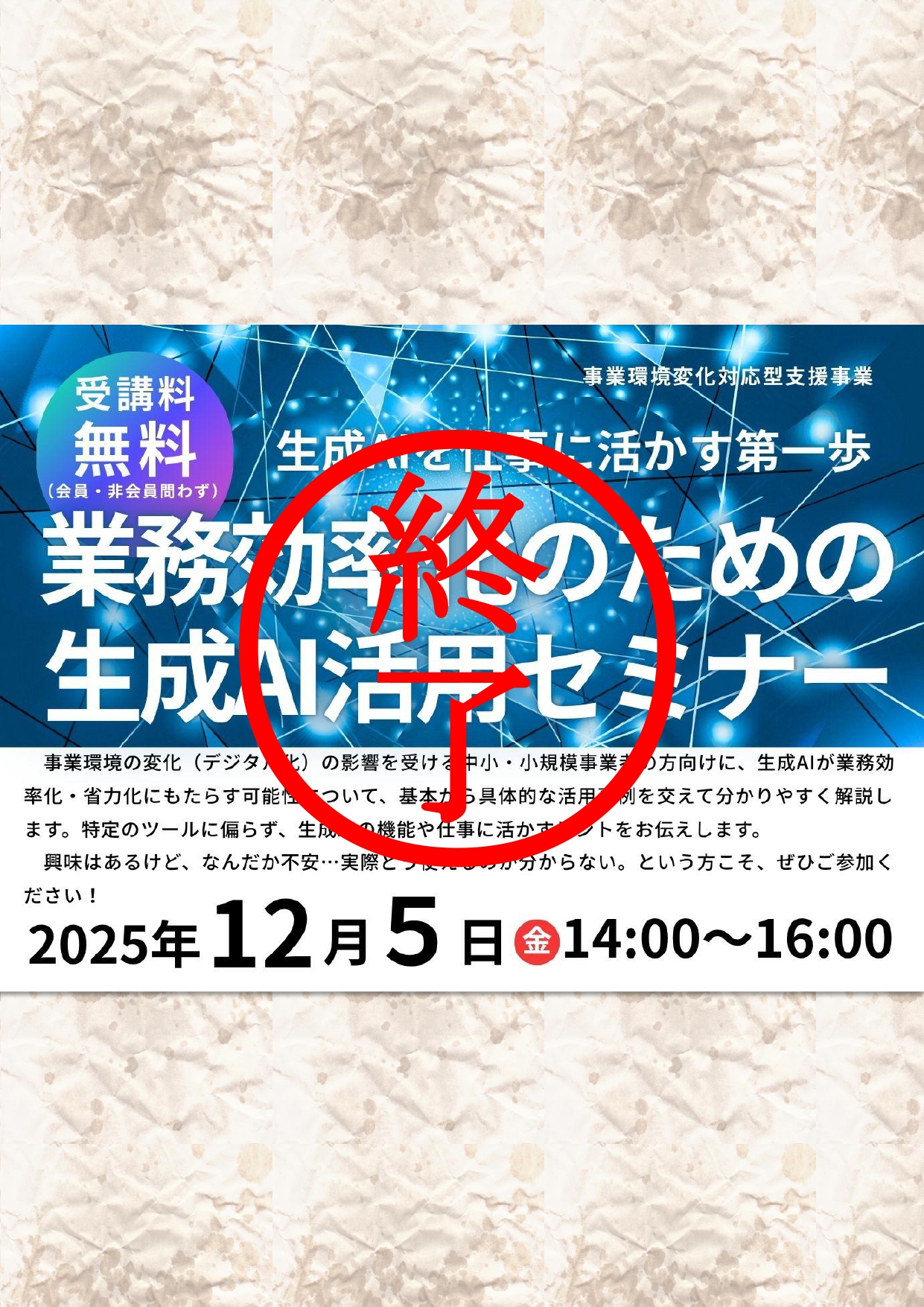 【終了】【当所主催】業務効率化のための生成AI活用セミナー(12/5)