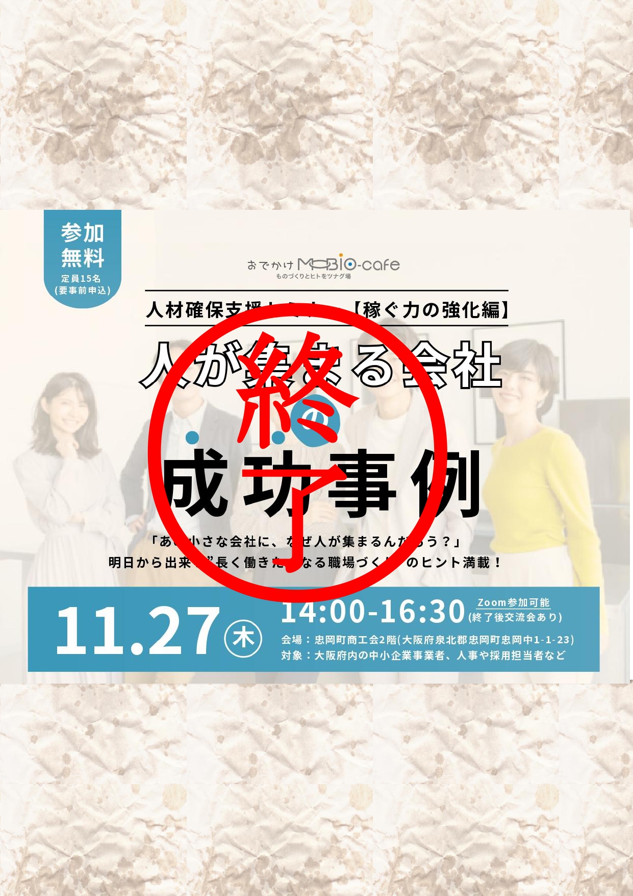 【終了】【当所共催】現場ヂカラの支援事業 人材確保支援セミナー【稼ぐ力の強化編】(11/27)