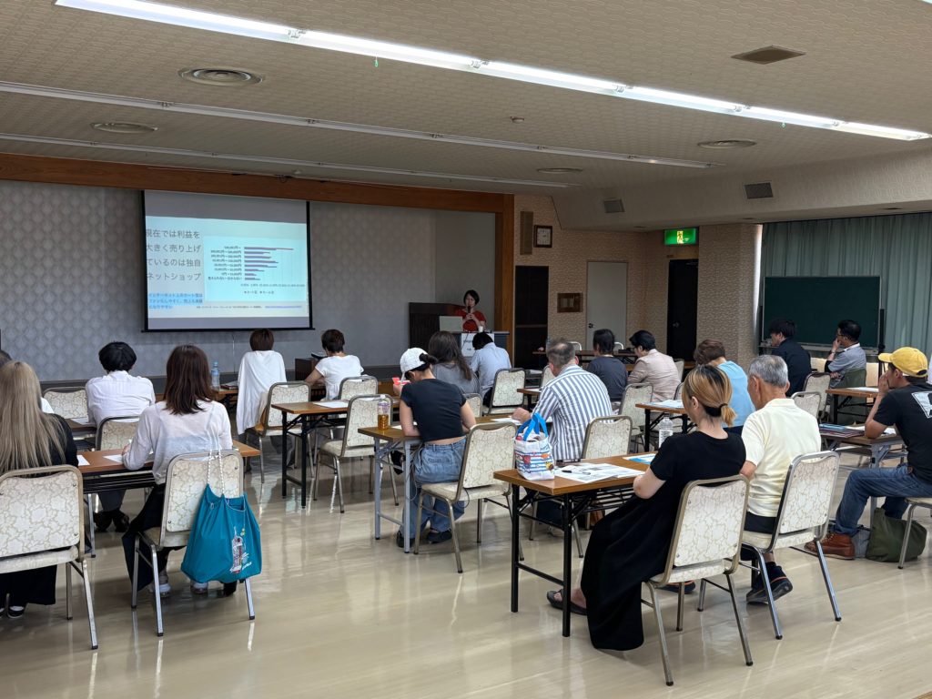 | 内容 | 講師の橘氏(合同会社モバイルエール)より、ECの最新動向や「BASE」の開設・運用方法、 さらにInstagramをはじめとしたSNSと組み合わせた効果的な販促方法について解説いただきました。 |